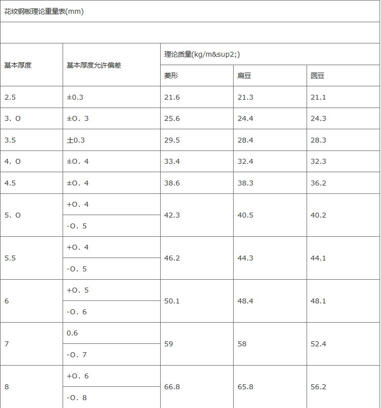 花纹板是表面有花纹的钢板。其图案有扁豆形、菱形、圆豆形和扁豆混合形,扁豆形在市场上较为常见。花纹板是热轧钢卷中常见的一种,一般属于热轧板。当然,样板也可以根据客户要求进行酸洗、除锈、抛光,使之成为冷板。